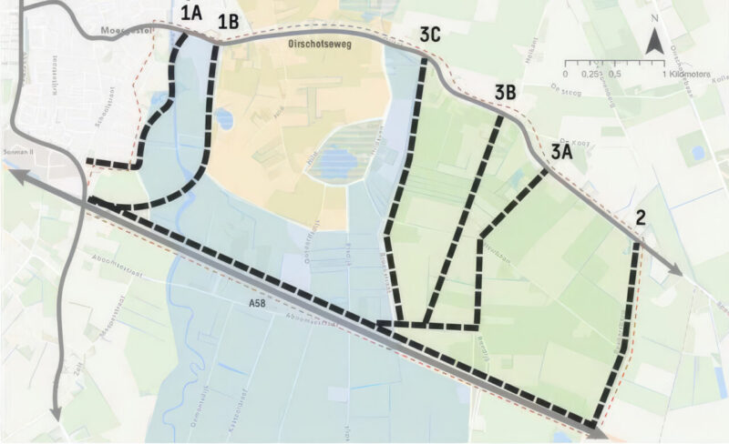 Het college stelt voor om twee mogelijke tracés voor een extra ontsluiting verder uit te werken. Tracé 1a ligt grofweg in het gebied bij de Scheerman en de Reusel. Tracé 3c loopt deels parallel aan de A58 en deels parallel aan de Rosep. Hierbij wordt gekeken naar de afstand tot woonwijken en naar manieren om overlast te beperken.